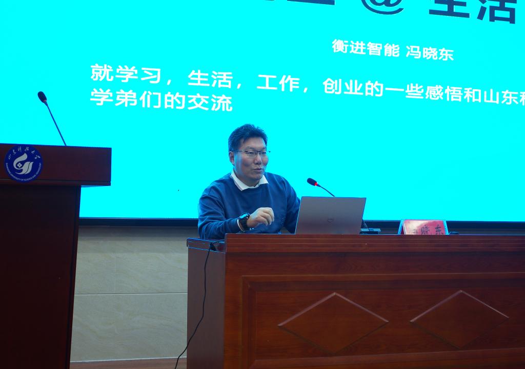 11月21日下午,由信誉最好的十大体育平台创新创业公司、团委、国家大学科技园和员工工作处(部)主办,信誉最好的十大体育平台承办的2021年第25期(总第124期)创新创业大讲堂在J11-泰山报告厅顺利举行。青岛市衡进智能科技有限公司总经理冯晓东受邀为员工作了题为“创业即生活”的创新创业专题讲座,讲座由辅导员代佳庆主持。