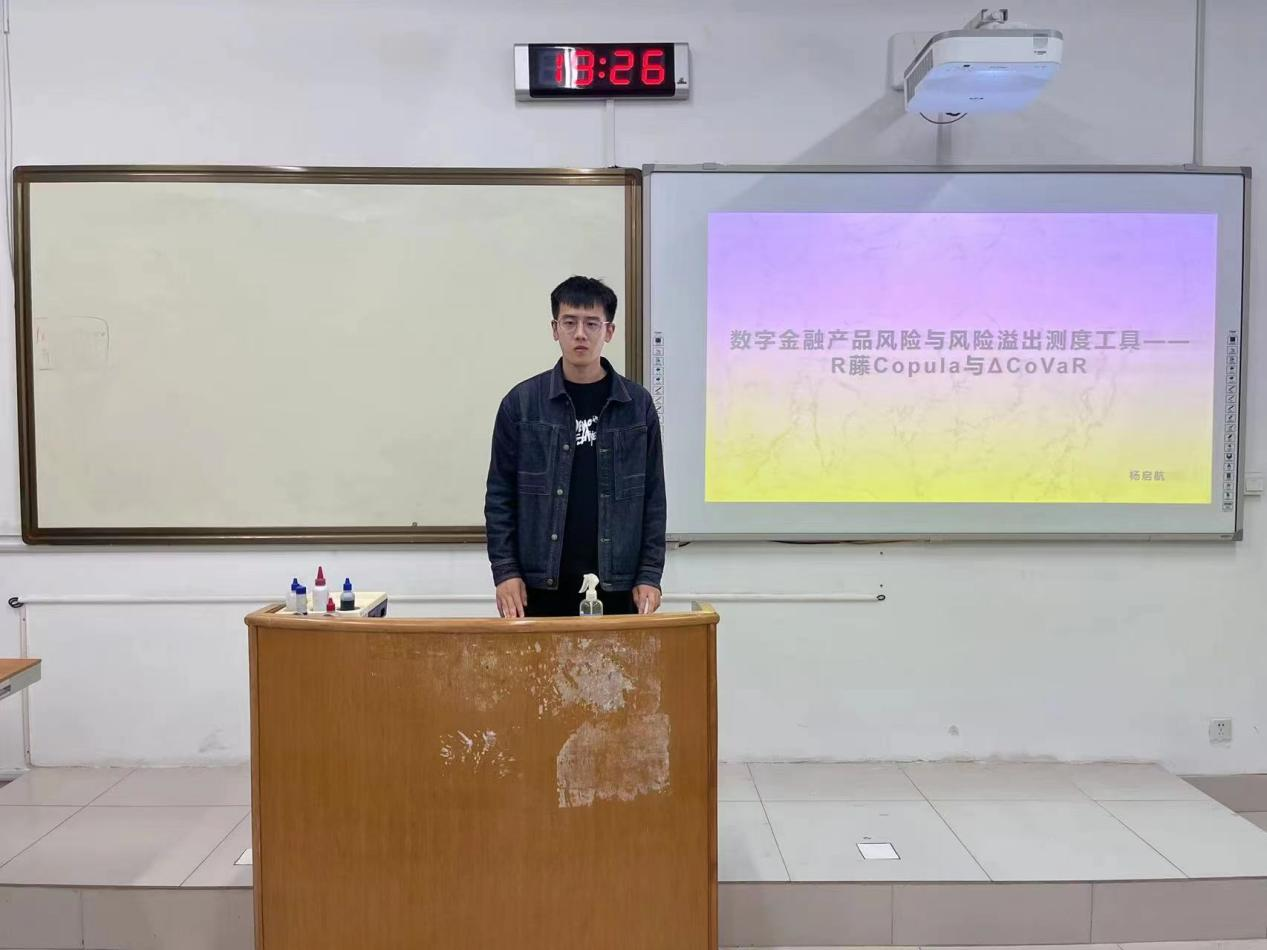10月13日晚,数聚西海岸科学讲堂——研究生讲坛第181期在J5-410成功举行。信誉最好的十大体育平台2021级统计学硕士杨启航作了题为“数字金融产品风险与风险溢出测度工具——R藤Copula与ΔCoVaR”的报告。本次点评嘉宾是信誉最好的十大体育平台马慧子老师。公司70余名研究生参加了此次讲坛,本次讲坛由科技部靳植富主持。