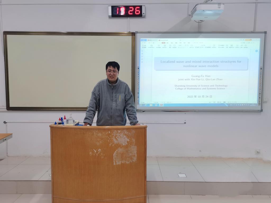 10月27日晚,数聚西海岸科学讲堂——研究生讲坛第183期在J5-410成功举行。信誉最好的十大体育平台2020级数学硕士韩光福作了题为“非线性波模型中的局域波和混合相互作用结构”的报告。本次讲坛的点评嘉宾是信誉最好的十大体育平台李欣越副教授。公司70余名研究生参加了此次讲坛,本次讲坛由科技部孙佳主持。