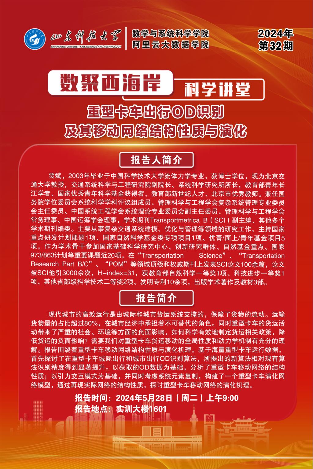 数聚西海岸科学讲堂2024年第32期:贾斌教授学术报告