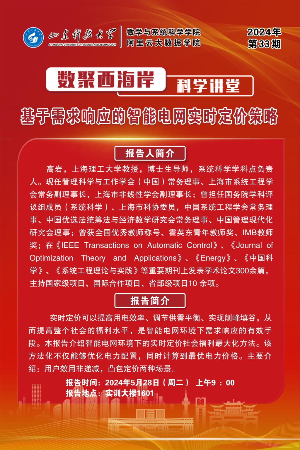 数聚西海岸科学讲堂2024年第34期:高岩教授学术报告