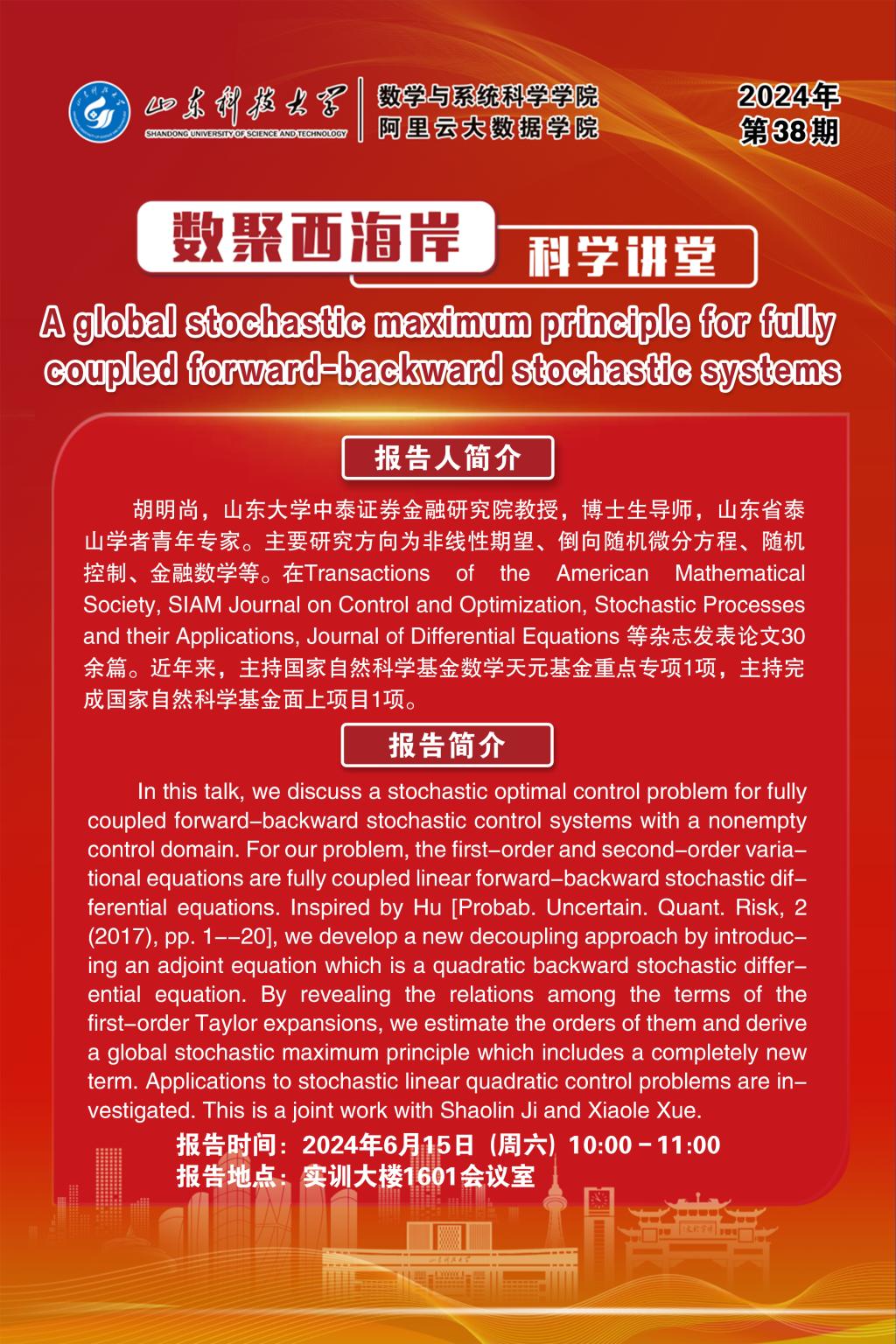 数聚西海岸科学讲堂2024年第38期:胡明尚教授学术报告