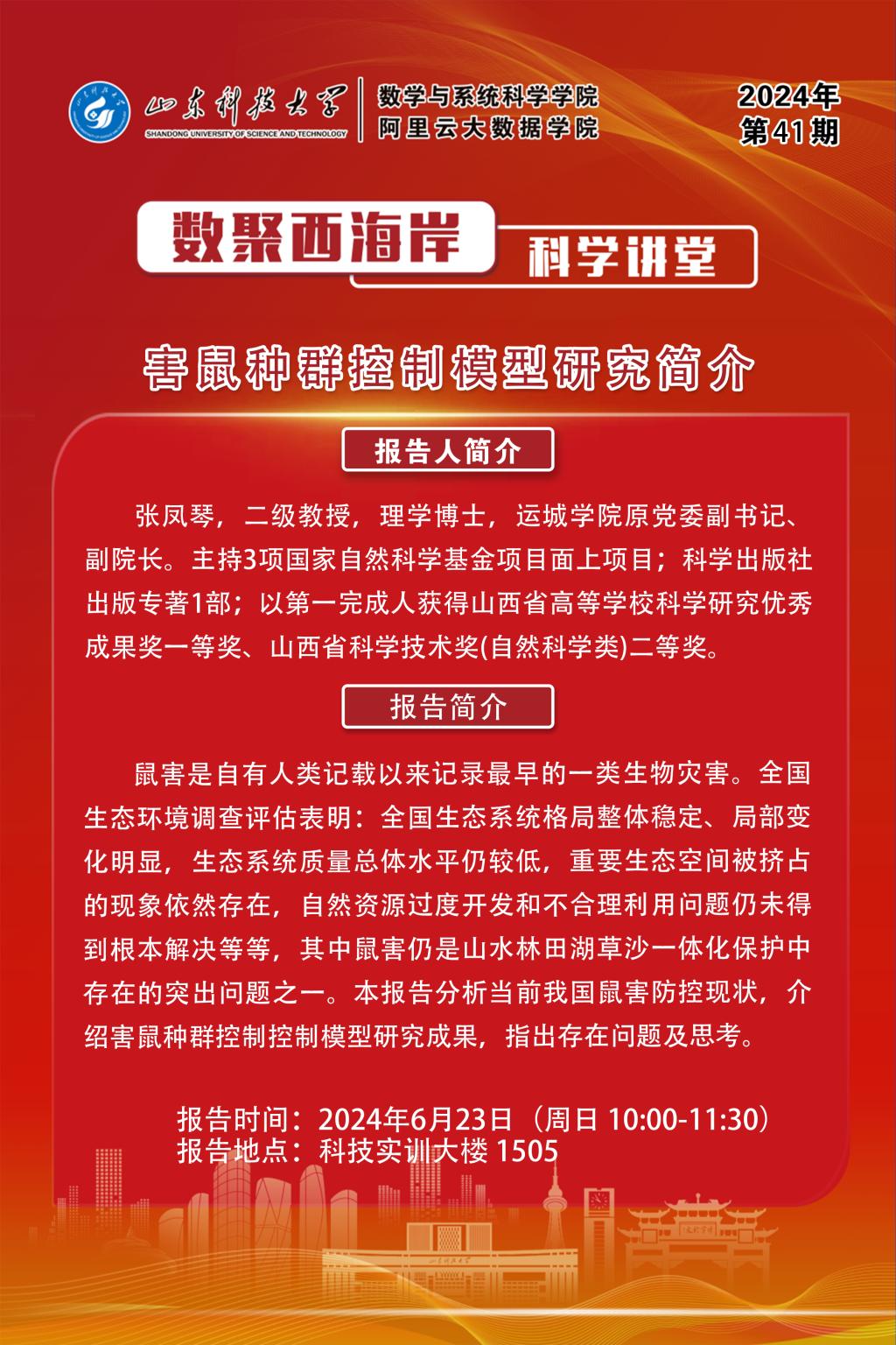 数聚西海岸科学讲堂2024年第41期:张凤琴教授学术报告
