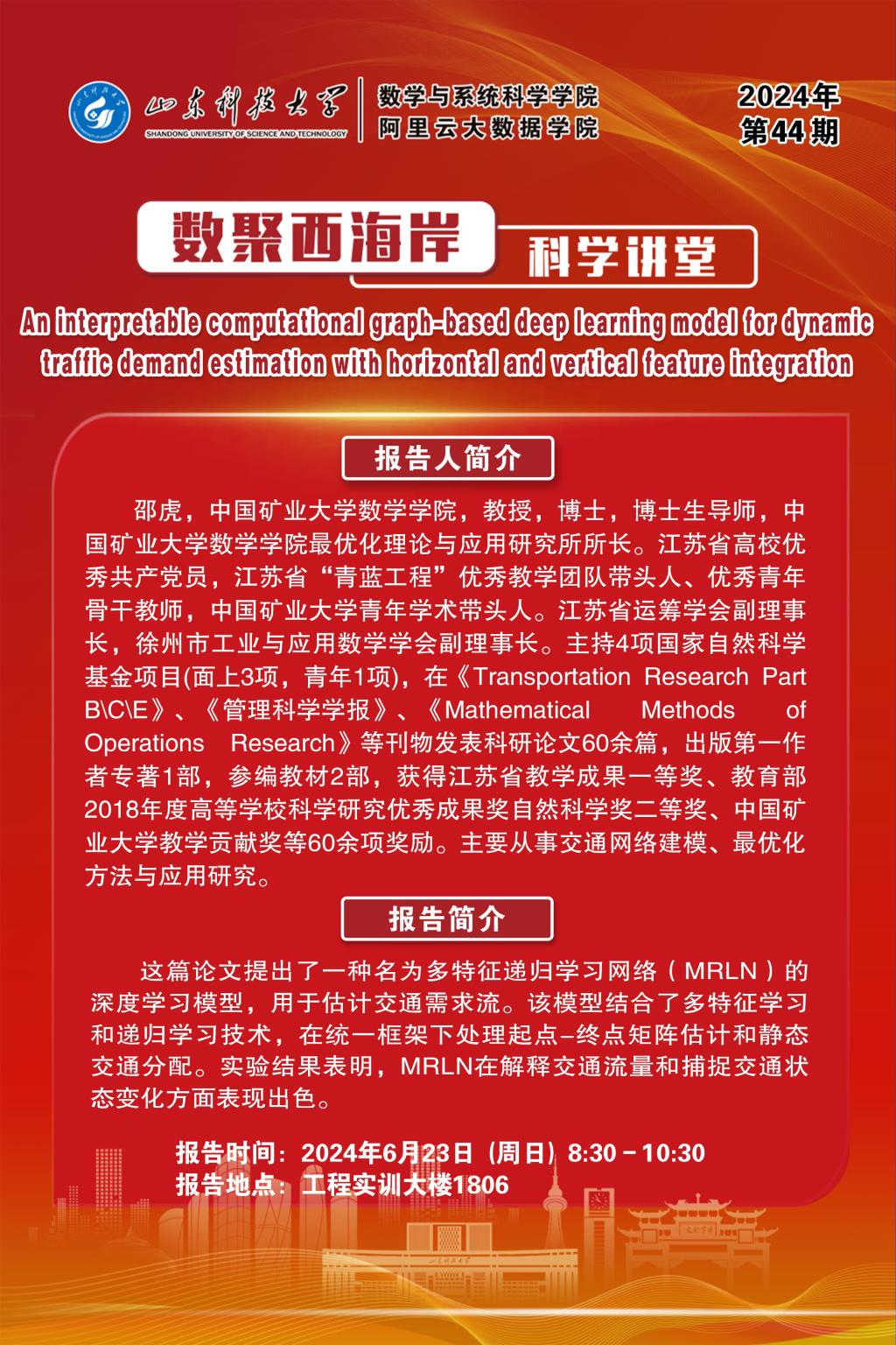 数聚西海岸科学讲堂2024年第43期:邵虎教授学术报告