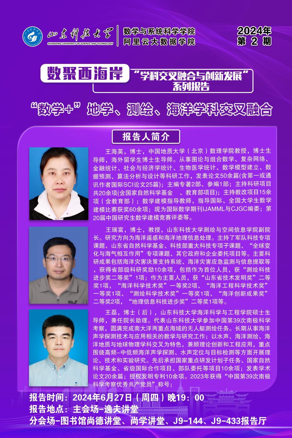 数聚西海岸“学科交叉融合与创新发展系列报告”——“数学+”地学、测绘、海洋学科交叉融合