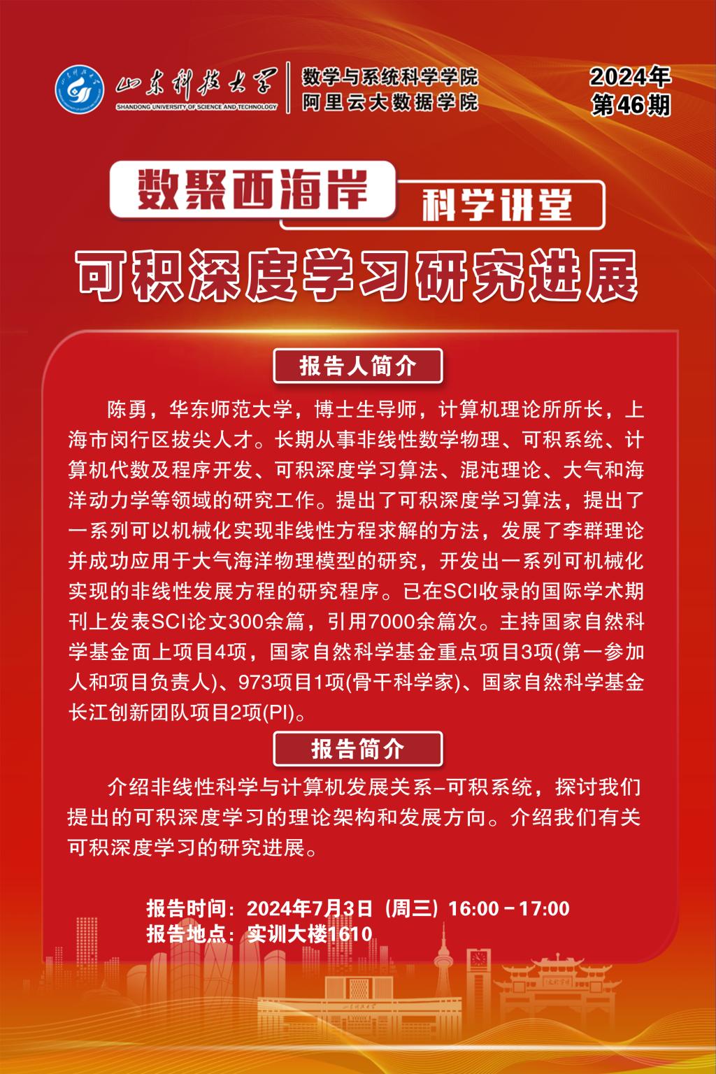 数聚西海岸科学讲堂2024年第46期:陈勇教授学术报告