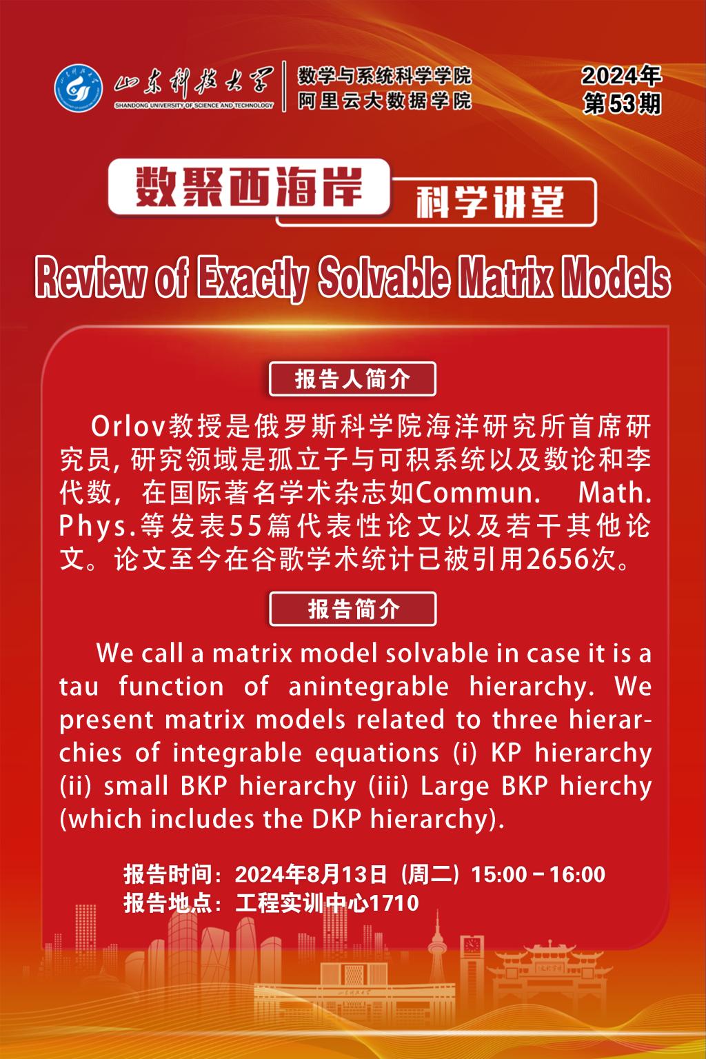 数聚西海岸科学讲堂2024年第53期:Orlov教授学术报告