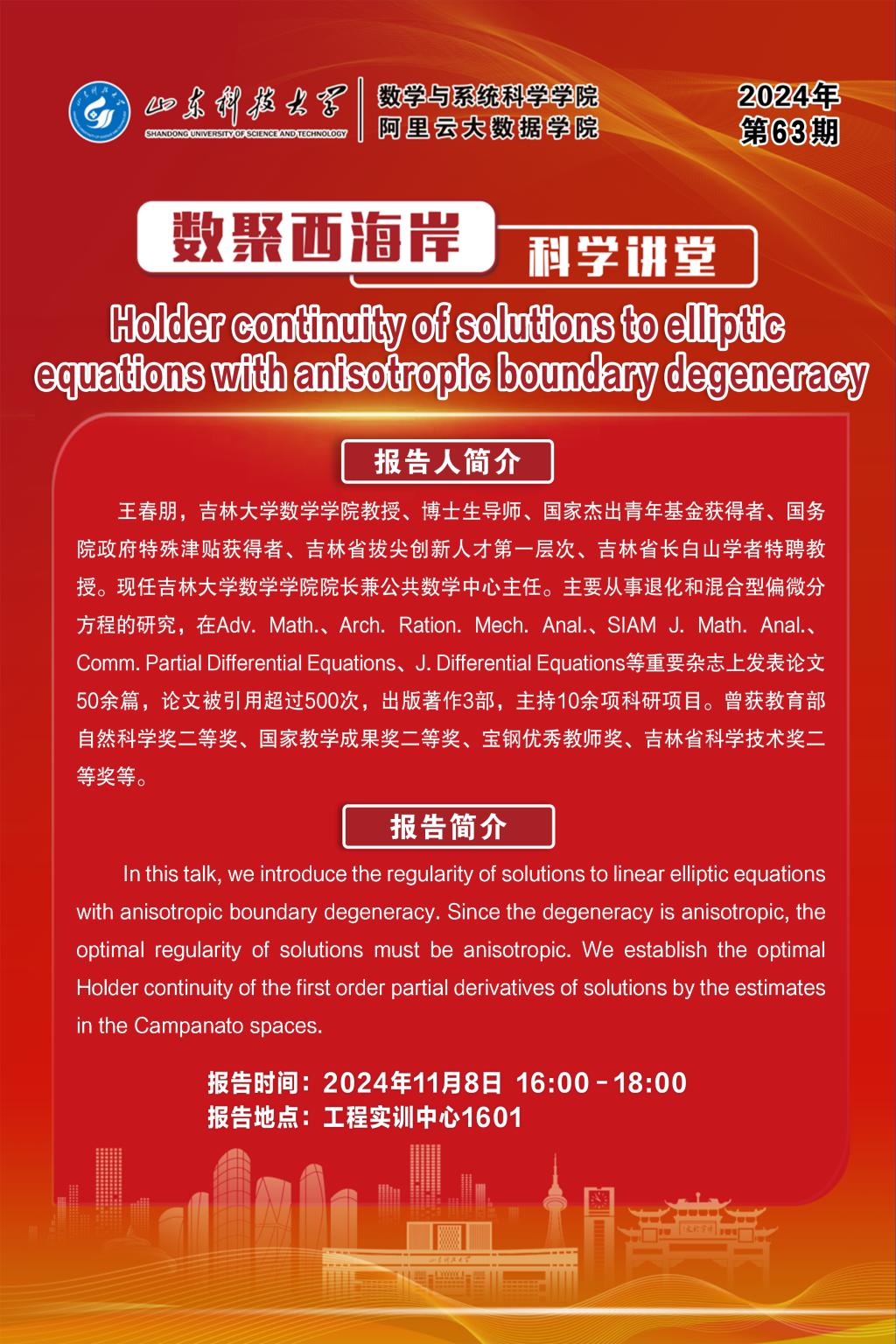 数聚西海岸科学讲堂2024年第63期:王春朋教授学术报告