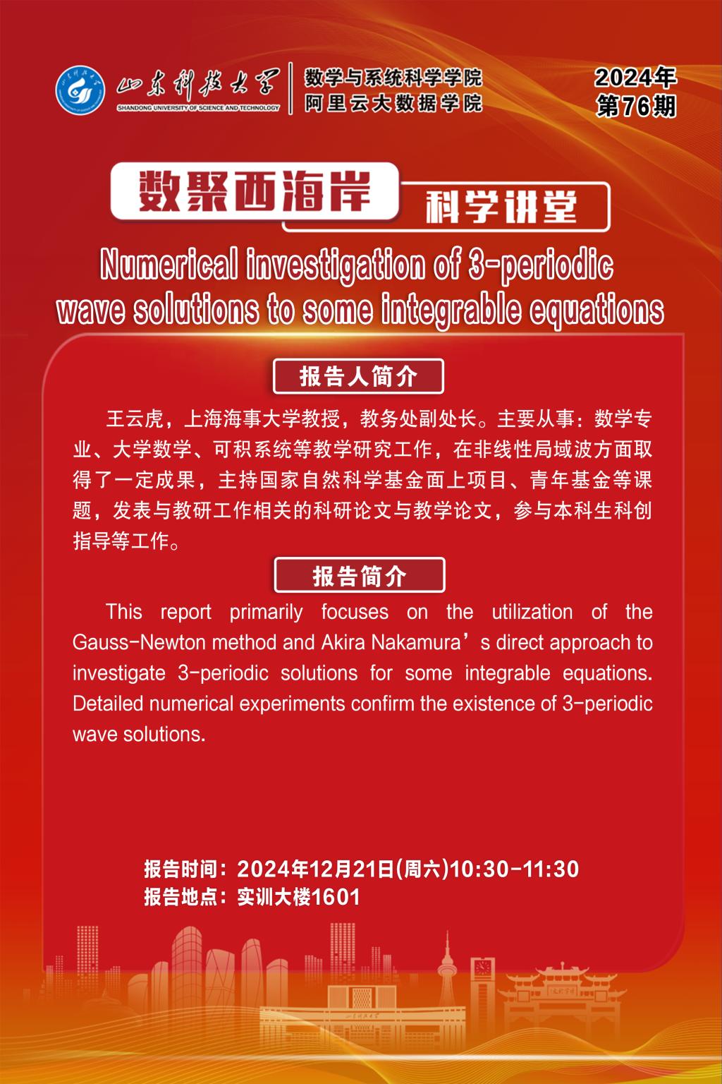 数聚西海岸科学讲堂2024年第76期:王云虎教授学术报告