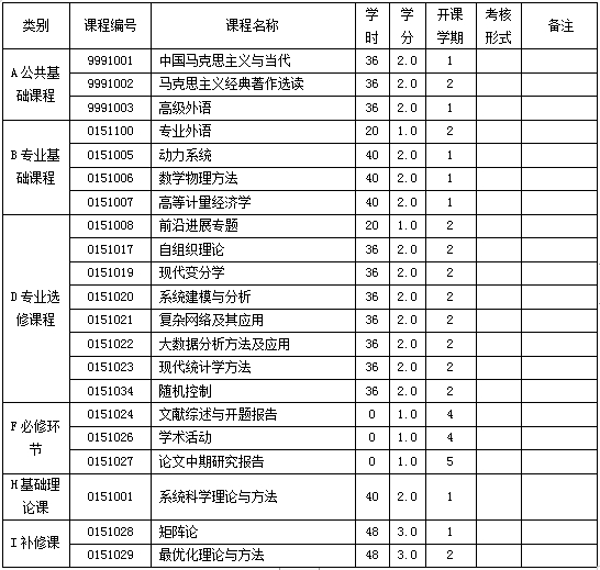 学科名称:系统科学(学科代码:071100)