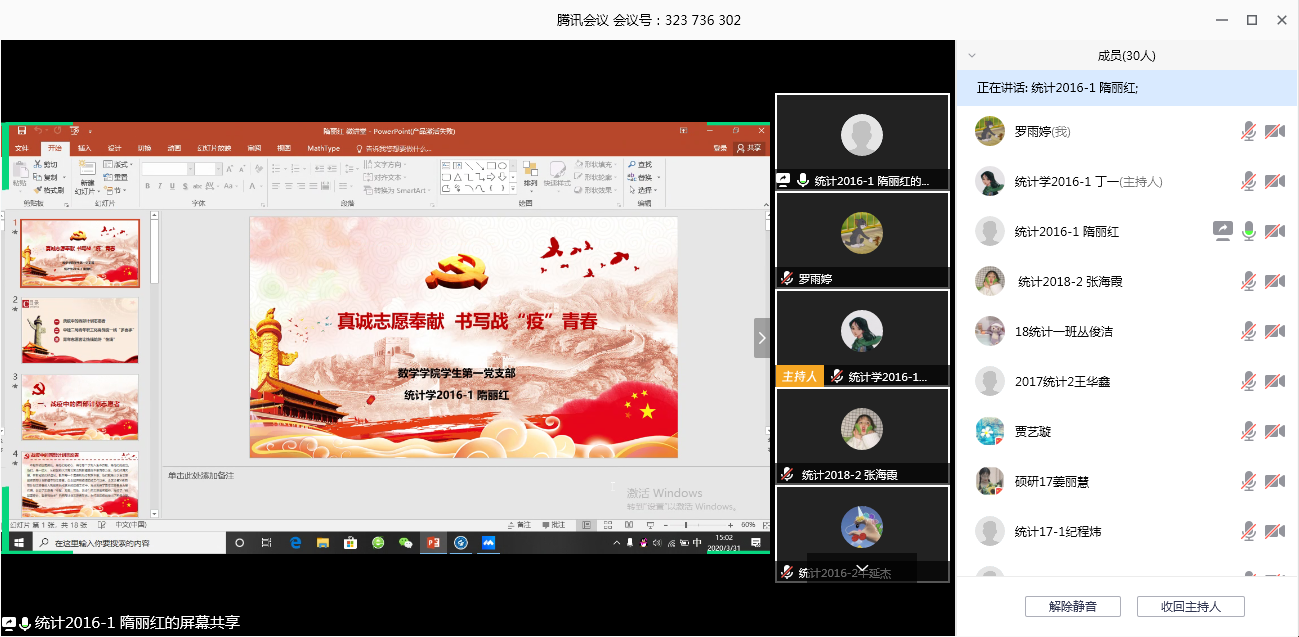 3月31日下午,第十一期“青春党建线上微讲堂”在腾讯会议室举行。本期微讲堂由员工第一党支部党员隋丽红和纪程炜担任主讲,员工第一党支部党员及入党积极分子参加。