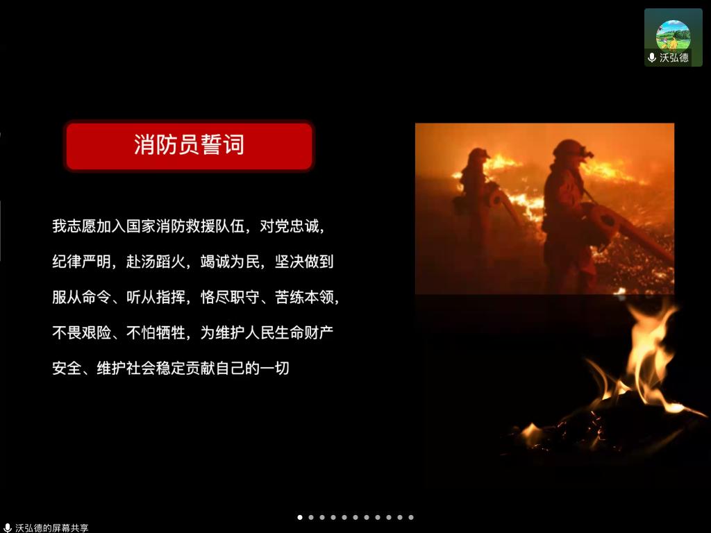 沃弘德讲述了在凉山大火中奋勇战斗的消防英雄们的光荣事迹。3月30日16时,凉山州西昌市突发森林火灾,为了不让人民的生命财产安全受到威胁,消防员们挺身而出站在国家与人民前面。沃弘德说道,消防英雄们以血肉之躯经受了血与火的考验,以无悔的青春彰显了最美担当,以年轻的生命谱写了一曲舍生忘死的英雄赞歌。她强调,我们老员工作为中国新一代的接班人,作为综合素质较高的一个群体,更要作实践奉献精神的表率。