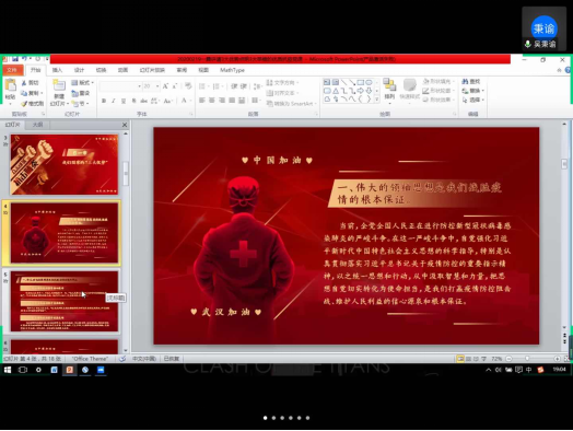 在特殊时期,本次微讲堂采用线上视频的方式进行,停课不停学,确保党员教育“不打烊”。通过本期微讲堂的学习,大家充分认识到,这场疫情,是2020年的新年考卷,在这场考试中,涌现了大批可歌可泣可敬的人。疫情虽然来势汹汹,我们战胜疫情的信心却与日俱增,我们的身后有党和国家做强大后盾,有党员先锋,有医护专家,有基层干部,有十多亿中国人共同在战“疫”,在我们坚强的守护下,祖国“大森林”一定会重现郁郁葱葱!