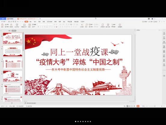 楚国祥的主讲的内容为“同上一堂战疫课,“疫情大考”淬炼“中国之制”,在大考中彰显中国特色社会主义制度优势”。没有哪一次巨大的历史灾难不是以历史的进步为补偿的,传染病的危害极大,必须给予充分的警惕。人类历史上超级传染病曾造成成千上万的人员伤亡,对社会发展造成巨大的冲击。我们要把防控疫情与经济社会发展结合起来,继续为实现既定的经济社会发展目标任务而努力;要坚持中国共产党的领导,疫情防控阻击战凸显了党的领导的极端重要性;要坚持全国一盘棋的动员机制,疫情防控阻击战凸显了全国一盘棋的优势。我们坚信,在党中央的坚强领导下,充分发挥中国特色社会主义制度的优势性,紧紧依靠人民群众,坚定信心、同舟共济、科学防治、精准施策,我们一定能打赢这场疫情防控阻击战。