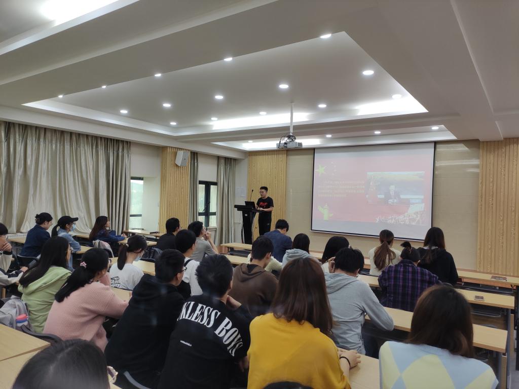 玄金虎以“坚定信心,共克时艰,共建更加美好的世界”为主题,分别从战胜疫情、复苏经济、加强团结和完善全球治理四个方面讲述了中国在疫情、经济、国际关系以及全球治理上的重要举措。他呼吁同学们,作为青年党员的我们在寻找自己正确的人生道路的时候,要将民族大义融于血液,将以人民为中心植根心底,力量不论大小,道路不语短长,为自己的国家、为党做出自己的贡献。