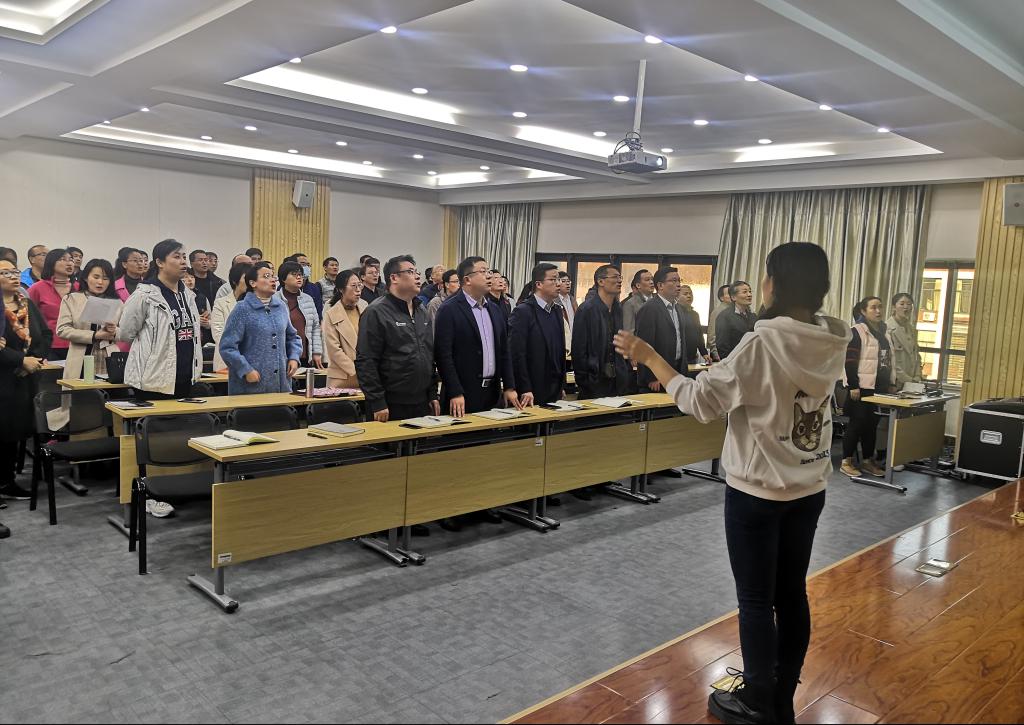 会后,全体教职工开展了校歌传唱活动。(通讯员:盖康)
