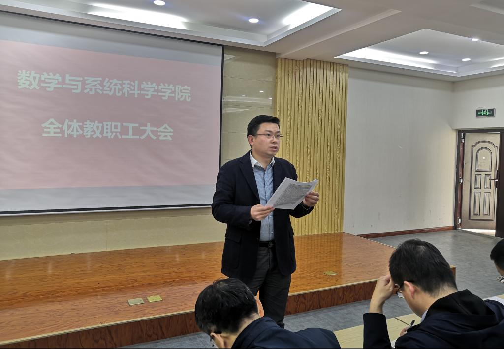 徐明磊带领全体教师学习了《中国共产党第十九届中央委员会第五次全体会议公报》。他指出,学习贯彻落实党的十九届五中全会精神是当前和今后一个时期的一项重大政治任务,广大教职工要积极学、深入学,推动会议精神进课堂、进头脑。政治理论学习后,徐明磊强调三方面工作:一要提高网络安全意识,防范个人信息泄露;二要凝聚全院合力,做好学科评估和全国一流专业申报工作;三要做好课堂教学,以扎实的工作迎接省委巡视组的检查。