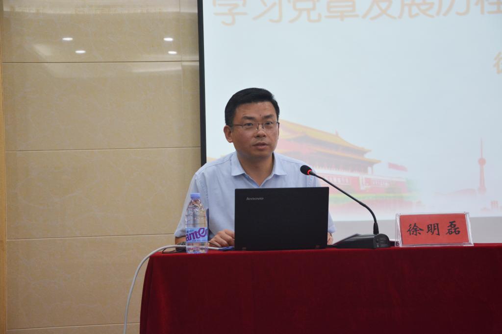 6月17日下午,公司党委书记徐明磊在J9-433报告厅以“学习党章发展历程,汲取强大信仰力量”为题为2021届全体毕业生党员上最后一堂党课。徐明磊以认识工作、认识自我、砥砺前行等关键词为切入点,与毕业生党员分享了自己的理解和体会,他希望全体毕业生党员在今后的人生道路上能够进一步明确肩上承担的使命和责任,成为一名知恩感恩、勇于担当的优秀党员。徐明磊对毕业生党员提出要求:要坚定理想信念,胸怀远大抱负;要坚持底线原则,恪守党员风骨,在新的工作、科研岗位上要牢记初心,充分发挥模范带头作用,展现山科数学人的风采与担当。