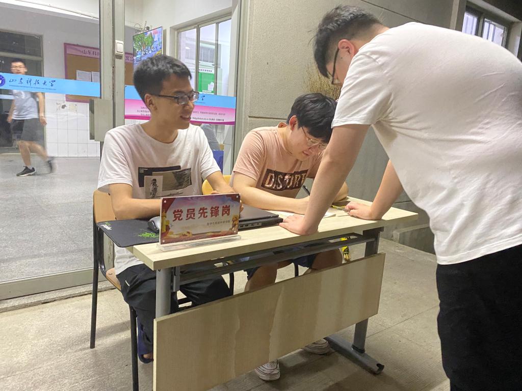 为确保毕业生安全文明离校,自6月11日起,公司“毕业生党员先锋岗”准时上线,每晚在员工公寓值班检查晚归不归,及时了解毕业生动态,协助老师完成毕业前各项工作,恪尽职守,勇于担当。“‘先锋岗’责任大、任务重,一定会严格要求自己、以身作则,更好地服务于同学,协助公司、公司做好毕业生安全文明离校工作。”毕业生党员靳保剑说道。