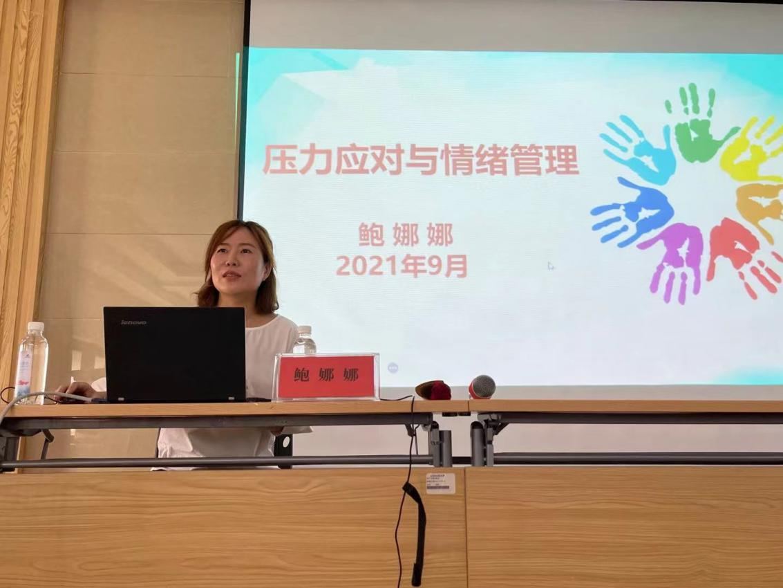 讲座中,鲍娜娜以“压力应对与情绪管理”为主题,首先从心理健康的标准出发,强调研究生要从生理、行为、情绪等多维度认知心理症状,让研究生对心理健康有了初步的认识。随后,鲍娜娜用幽默风趣的语言、栩栩如生的案例故事向在座的师生讲解了应如何面对压力,引导研究生在学业、人际交往、生活和择业等过程中培育自尊自信、积极向上的心态,让研究生对心理健康有了更加系统化的认识。最后,鲍娜娜鼓励研究生要不惧怕心理健康问题,并希望他们学会认知,学会共处,健康快乐地生活,培育阳光心态,保持心理平衡。讲座现场,员工们积极互动交流,纷纷表示受益匪浅。