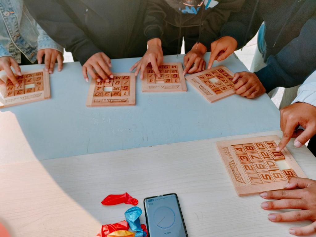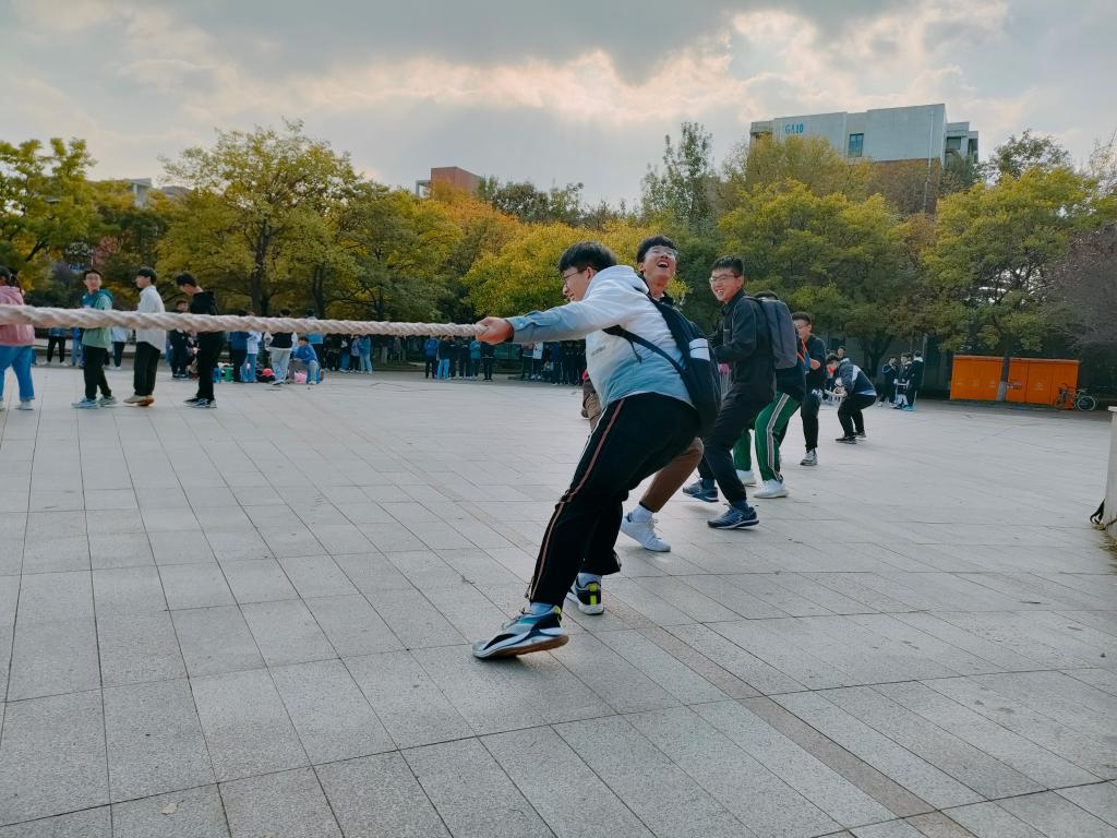 下午2点,素质拓展活动正式拉开序幕。活动实行淘汰复活制,以班级为单位,六人一组进行比赛。游戏分为主线任务和副线任务。 主线任务中,同学们在拔河比赛中紧握绳索,毫不放松,体会团结协作的精神;在踩气球比赛中同学们不甘示弱,毫不畏惧,感受紧张愉悦的氛围;在面粉接力比赛中凝心聚力,默契配合,探索简便省时的技巧。在主线任务中淘汰的选手还可以参加副线任务,通过华容道和两人三足比赛复活。活动现场充满了欢声笑语,处处可以感受到团结合作的氛围,加油呐喊声更是不绝于耳。三个小时的户外活动圆满结束。