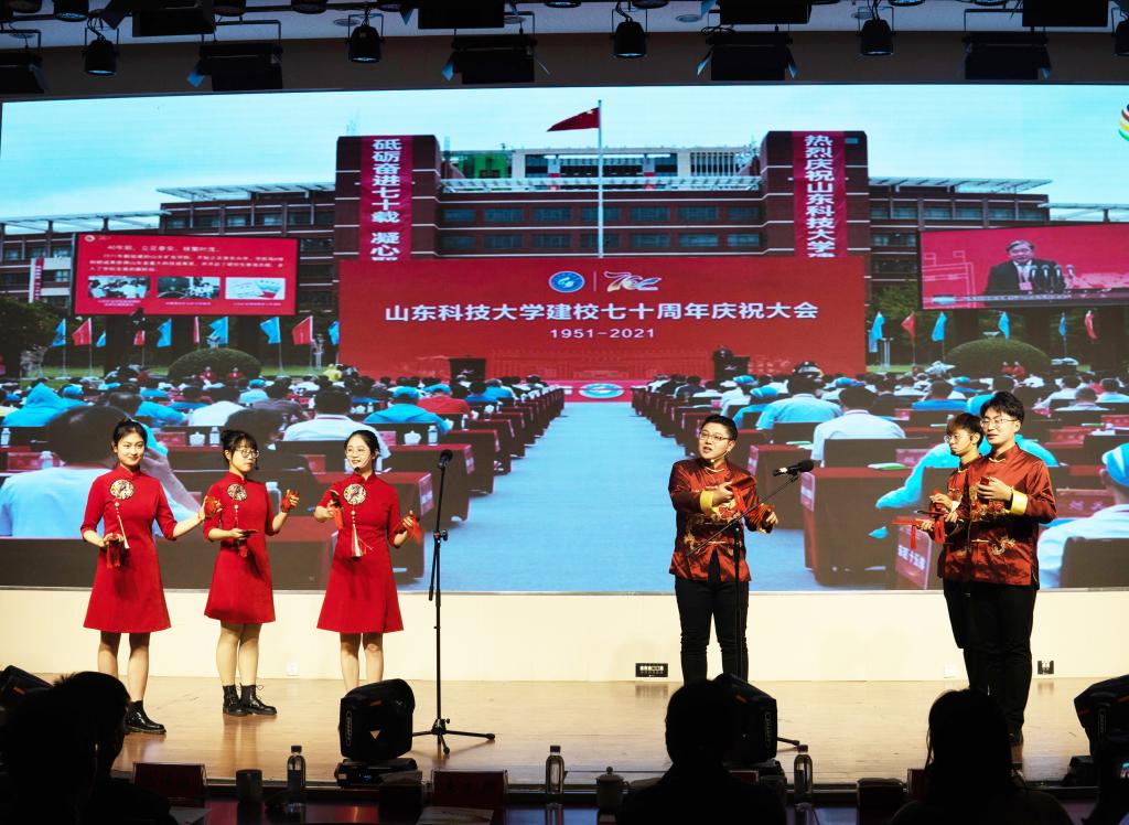活动共7个节目,分别围绕“红色基因—思想引领”、“橙色朝气—生命健康”、“金色暖阳—育人合力”、“绿色心态—网络环境”、“青色希望—志愿服务”、“蓝色引擎—创新创业”和“紫色魅力—校园文化”展开表演,炫动的合唱《唱支rap给党听》、精彩的歌舞《我们都是追梦人》、贴近老员工活的情景朗诵《网络安全我先行》、致敬抗疫英雄的情景宣讲《最美志愿者》、激情飞扬的武术表演《华夏少年 乘风破浪》,活动节目种类繁多、紧扣主题,每一个节目表演者都尽心演绎,引人入胜。在节目《亦师亦友 金色暖阳》中老师和同学们一起伴随着美妙旋律,用意境优美的作词,用充满激情的朗诵,叙说着师生间的平凡故事;“七七年,计算数学,国家需要把班办...一七年,又拓展,大数据成为新成员...划重点,划重点,系统科学博士点...”,在师生共同演绎的《百年展华章 七秩续征程》快板表演中,充分将公司发展的历史沿革、取得的显著成就融入说词中,以师生喜闻乐见的方式呈现了出来。