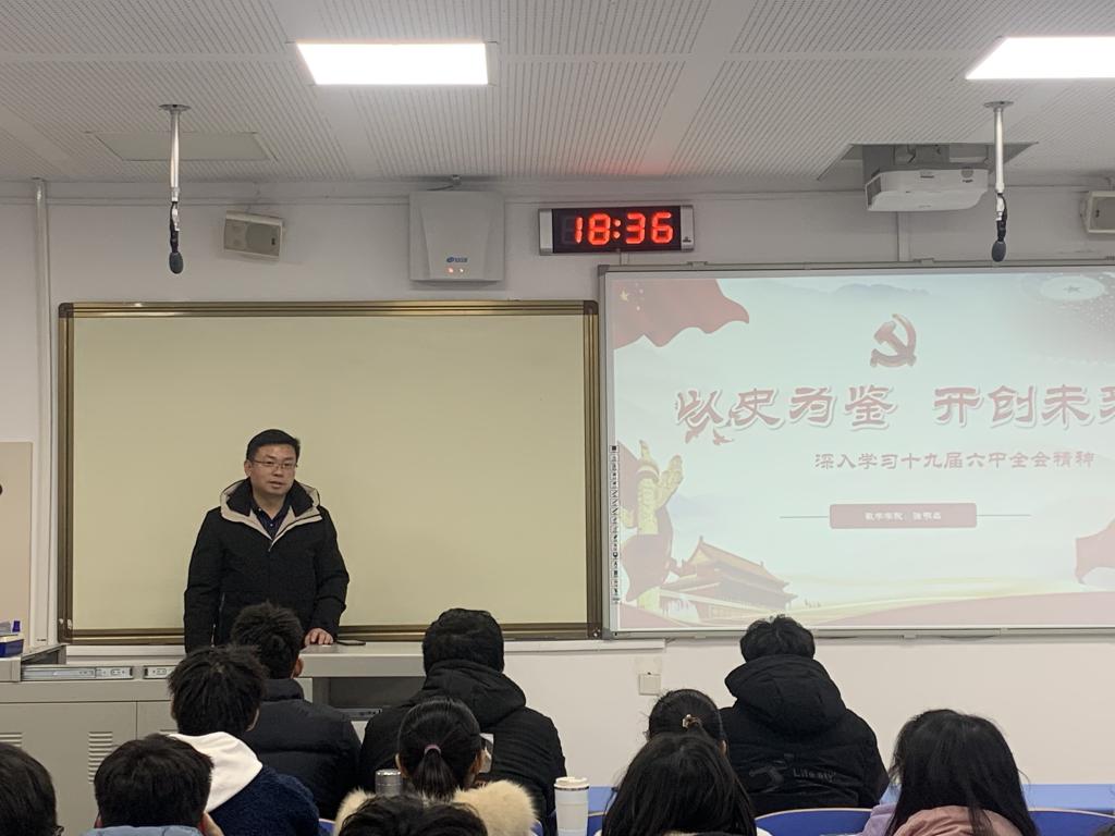 为学习好、宣传好、贯彻好党的十九届六中全会精神,确保六中全会学习宣传往深里走、往实里走、往心里走。近日,公司党委书记徐明磊在J7-313教室为所联系班级统计学2021-1班全体员工宣讲党的十九届六中全会精神。