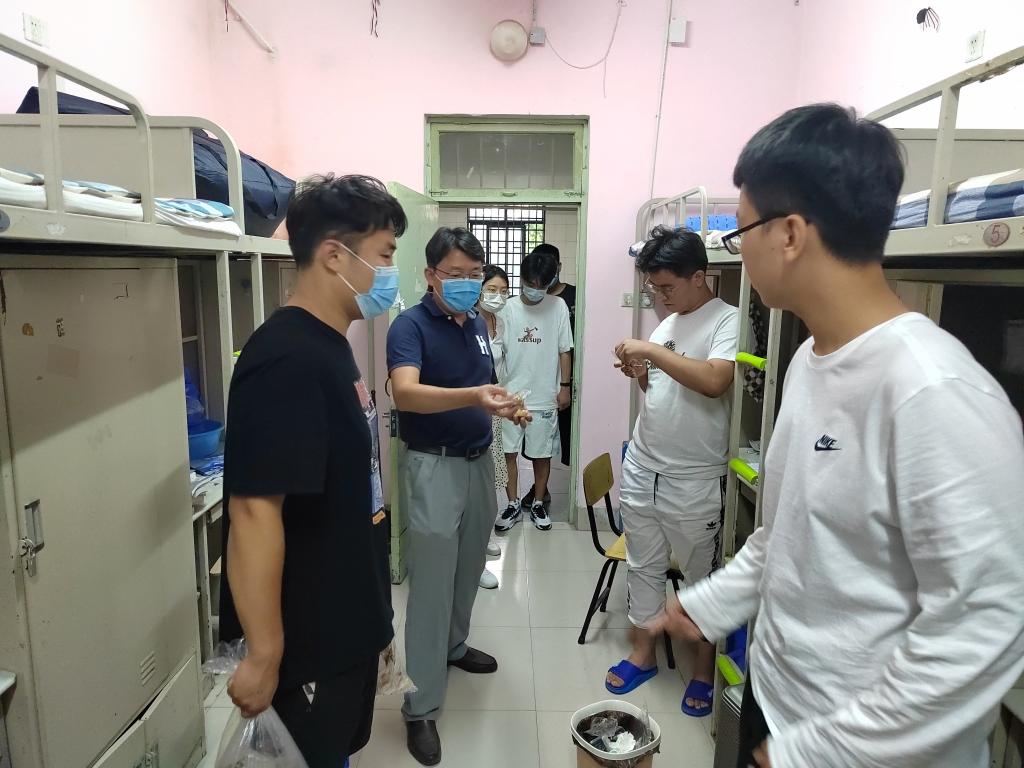 刘辉一行走进各年级宿舍楼,与同学们亲切交谈,仔细询问了他们的学习、生活等状况,同时强调了疫情防控要求,希望同学们理解、支持、配合公司的疫情防控措施,自觉遵守纪律,保持学习热情,展现老员工的自律担当。在轻松愉快的交流中,老师们逐一为同学们发放了公司精心制作的爱心月饼。