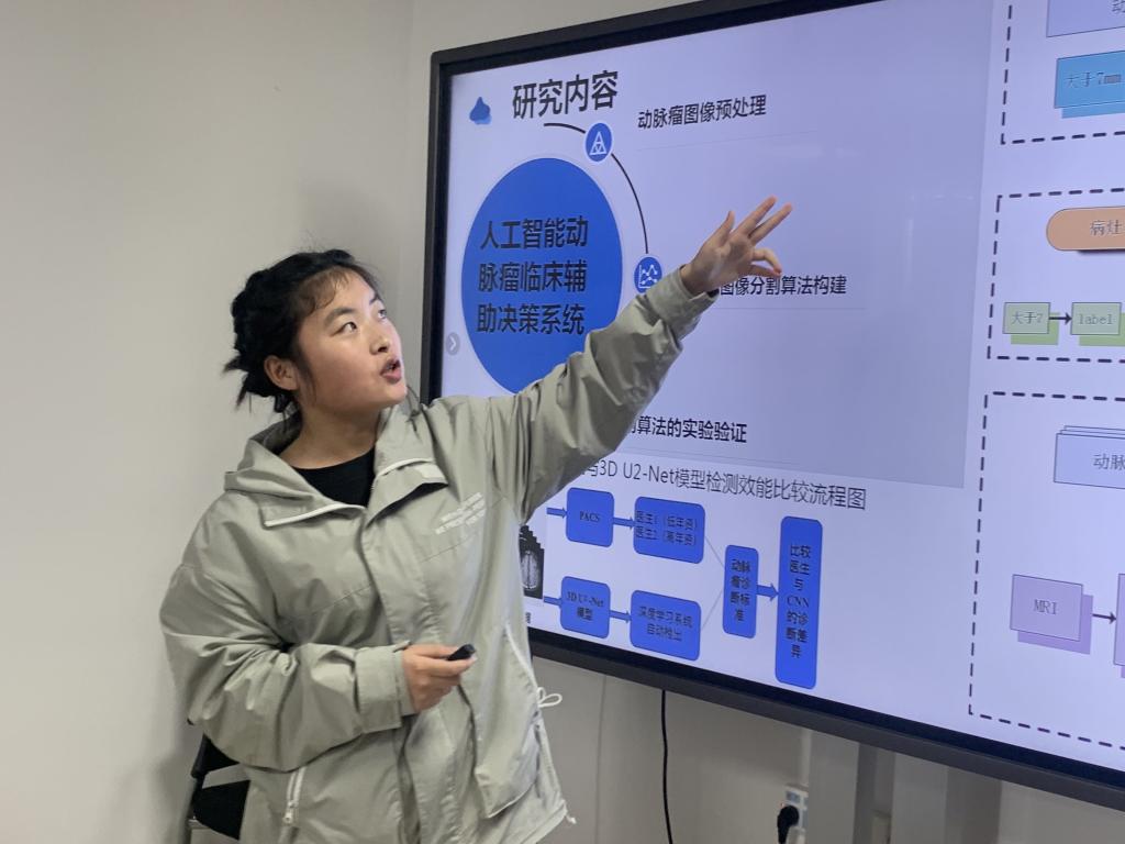 经前期自主报名、材料审核,共10支队伍参与本次答辩,项目类型覆盖医学图像处理、智能机器人、非遗文化保护、生物算法等多个领域。项目负责人主要围绕项目背景、行业痛点、项目内容与实施过程、创新与特色、预期成果等方面进行了详细陈述。评委老师针对每一个项目的优缺点进行详细评价,并针对项目的短板提出了针对性的指导和建议。
