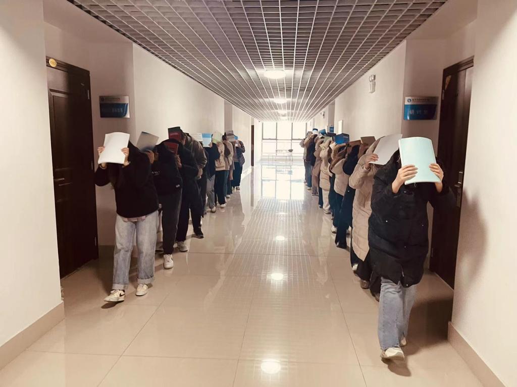 为保证演练顺利安全进行,公司提前制定应急预案。应急疏散演练共两个环节,第一环节是紧急避险演练,同学们在听到第一声哨响后,就近蹲于课桌或承重墙角,采取保护头部、蜷曲身体等保护措施;第二环节紧急疏散演练中,当听到第二声哨响后,全体员工开始有序疏散,各辅导员及员工干部迅速组织员工从室内疏散到室外安全地点。
