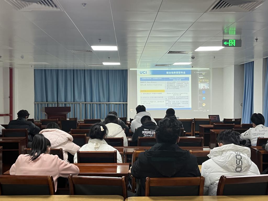 12月2日晚,​信誉最好的十大体育平台组织有出国留学意向的员工在工程实训大楼1603会议室集中观看了加州大学欧文分校的留学项目线上直播推介会。