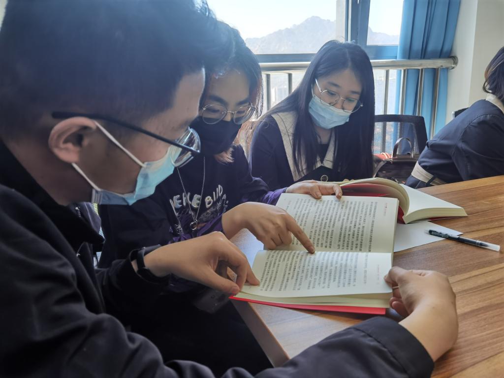 活动中,“青马”学员三人一组通过领读或共读的形式学习《习近平与老员工朋友们》一书中的章节选段,小组内学员进行交流后由各组推荐1名代表与大家分享小组的读书感悟。