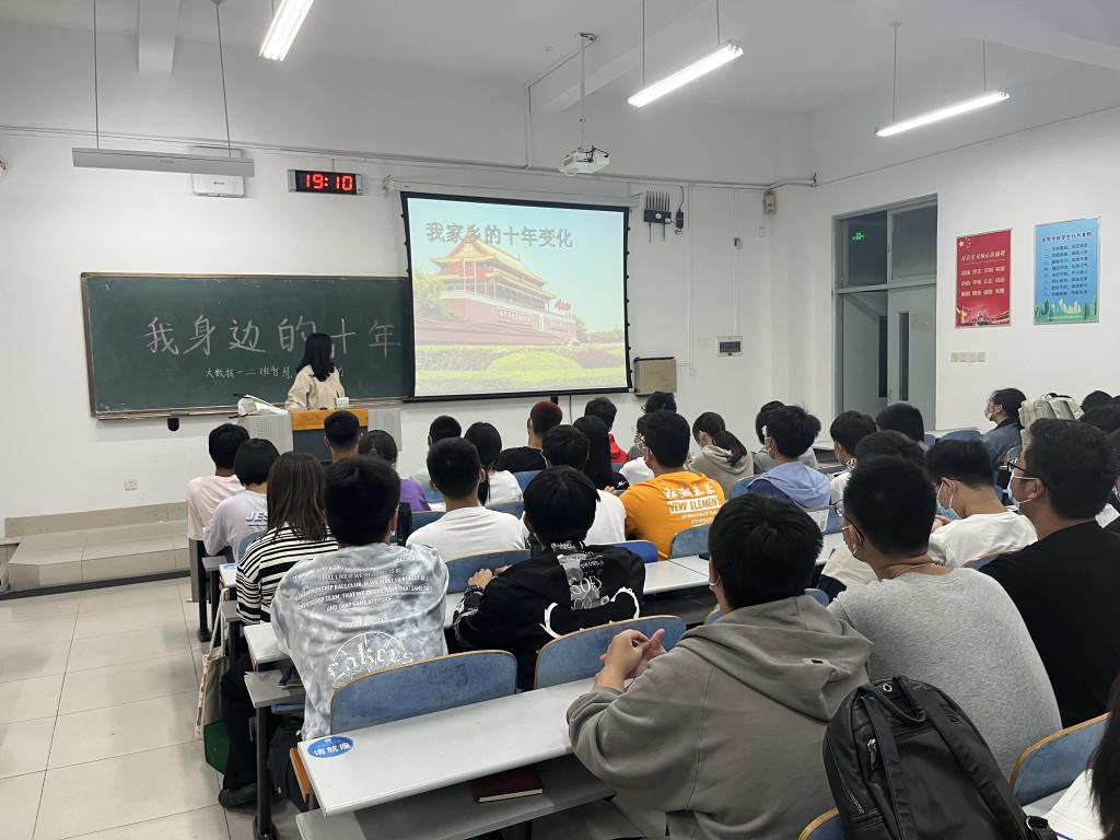 国庆期间,各团支部还积极开展学习交流活动,在教室、操场等地畅谈“我身边的十年”家乡发展,感受国家发展伟大成就带来的改变。