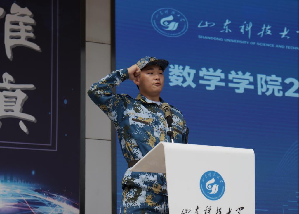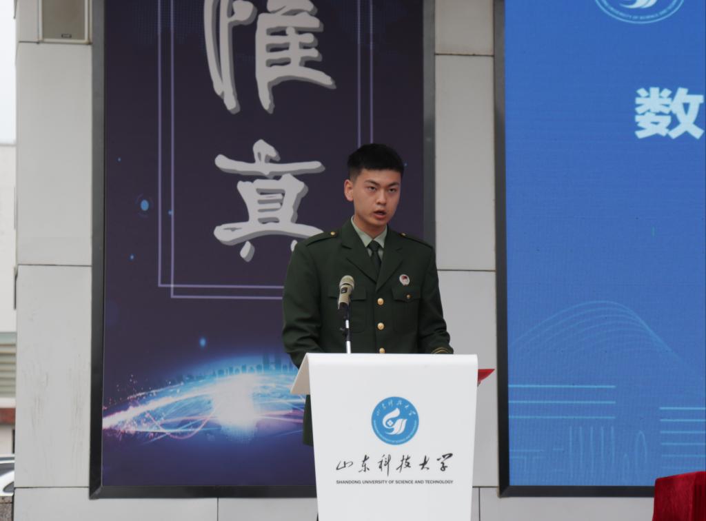 2019级退伍复学员工柳元辉上台发言,他分享了自己在部队期间的成长与感悟,“流血流汗不流泪,掉皮掉肉不掉队”,他希望同学们能在团结和鼓励中共同进步,在坚持和陪伴下彼此珍惜,以良好的精神面貌和过硬的军事素质,勇敢地投入到军训生活中去。
