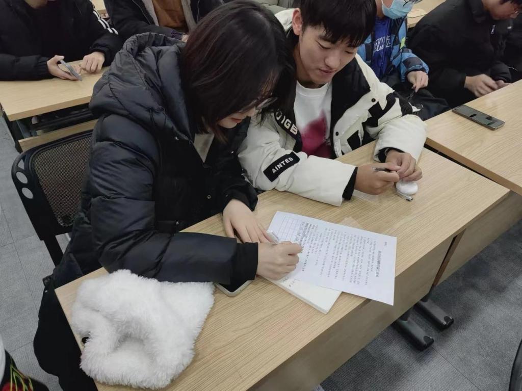 会上,辅导员带领员工一同观看防诈案例视频和宣传短片,学习防范电信网络诈骗宣传手册,向员工普及网络电信诈骗的常见手法和新型方式等,告诫同学们牢记“八个凡是”,用好七个反诈利器。随后,辅导员带领同学们认真学习了《中华人民共和国反电信网络诈骗法》部分章节,并组织员工现场签署“不参与电信网络诈骗犯罪承诺书”。