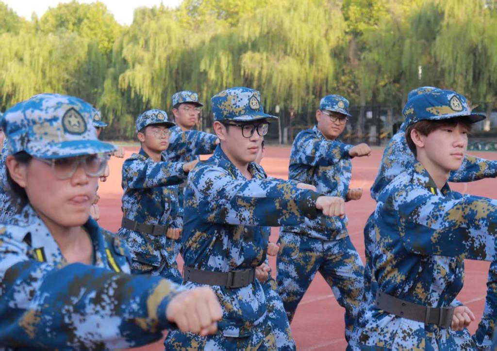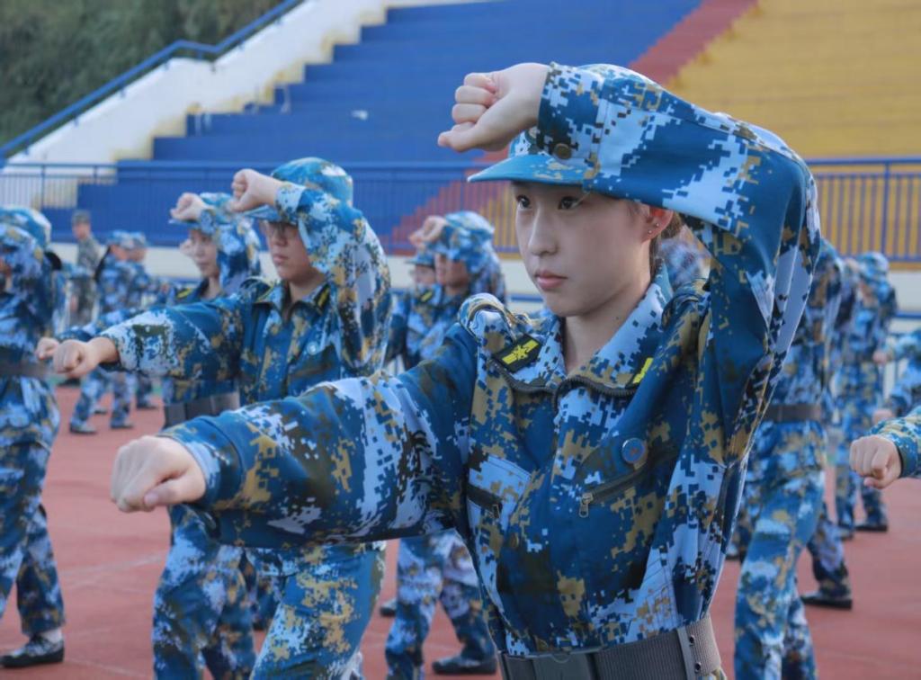 近期的训练内容主要为队列动作与军体拳训练。初学时,军体拳的动作尚显生涩,招式转换间略带犹豫;如今,同样的“弓步冲拳”已虎虎生威,“马步架打”也愈发稳健有力。教官们耐心如初,细致纠正每一个手势与步法;同学们则渐入佳境,逐渐领会发力要领与动作精髓。汗水一次次湿透迷彩,但眼神中的专注与坚定与日俱增。在训练间隙的休息时刻,新生们齐声合唱《强军战歌》,嘹亮的歌声传递出他们的朝气与对军训的热情。