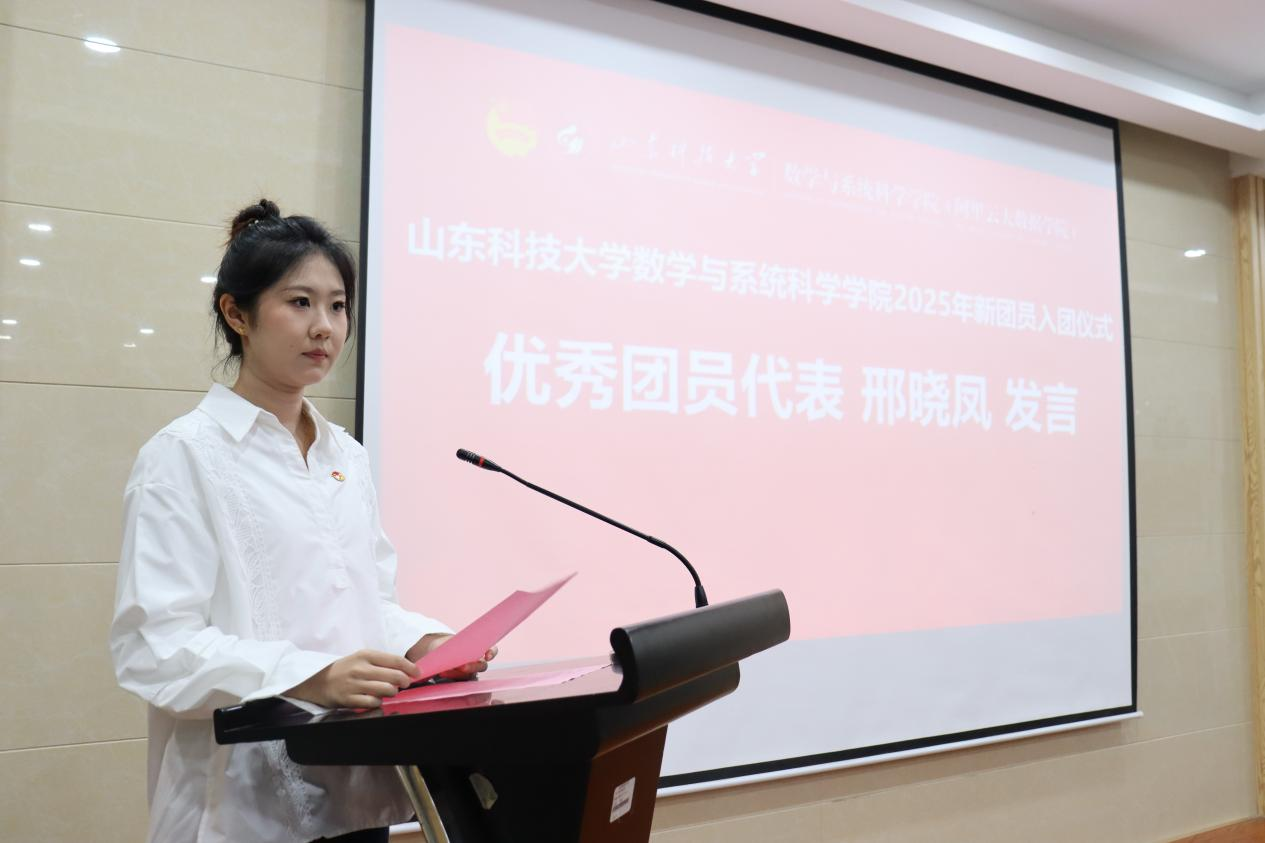 数据科学与大数据技术2024级5班董伊晨作为新团员代表发言,她对能够加入中国共产主义青年团感到无比荣幸,同时,她号召全体新团员,在今后的学习生活中,要严格遵守团的章程,认真履行团员义务,努力学习,以身作则,充分发挥团员的先锋模范作用。随后,统计学2023级1班邢晓凤作为优秀团员代表发言,她分享了自己在入团以来感悟,认为入团是一个崭新的起点,而非奋斗的终点,并鼓励新团员承担起应有的责任与使命,在团组织的培养下不断成长进步。