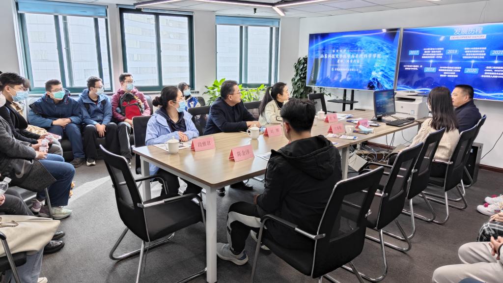 青岛中海潮科技有限公司副总经理庄冬春对公司师生的到访表示热烈欢迎,详细介绍了公司发展概况、项目平台建设、职业发展前景等情况。刘辉介绍了公司的专业设置、人才培养、考研就业等情况,并现场推介优秀毕业生,精准助力毕业生求职就业。双方就进一步深化校企合作、优化人才培养模式做了深入交流。目前在该公司就职的数学与应用数学专业的2020届陈金泽和2021届王洪秋两位员工也分别结合各自的求职经历、工作感悟作了发言。