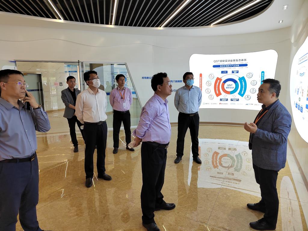 青软集团总经理李战军对公司领导老师的到访表示热烈欢迎,并带领参观了公司的展示大厅和办公环境,讲解了公司的创业历程、业务领域范围等。座谈会上,周东华与各单位负责人就校企合作、毕业生招聘、产教融合基地建立、促进毕业生实习就业等合作议题开展深入交流探讨,他表示,校企合作一直以来都是推动地方经济发展的重要机制,也是赋能青年人筑梦远航的重要平台,希望校企双方在已有基础上进一步推进产学研合作,深化产教融合,确保校企人才供需精准匹配,更好地服务国家、地方发展大局。