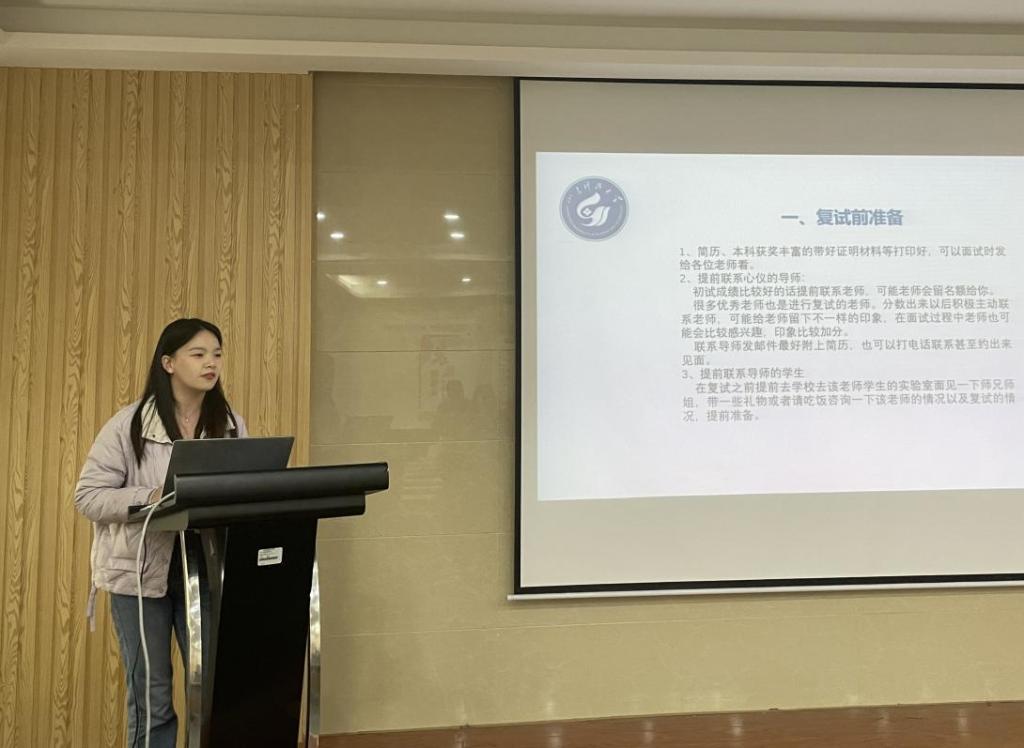 “研”途有你,全力以“复”。为帮助考研学子充分了解复试内容、明晰复试规划,提升复试竞争力,助力成功上岸。近日,​信誉最好的十大体育平台学霸助教团师生党支部在J9-433报告厅开展2023届考研复试经验交流会,党支部成员吴国潇、张鑫和孙荣璞为同学们分享考研复试经验。