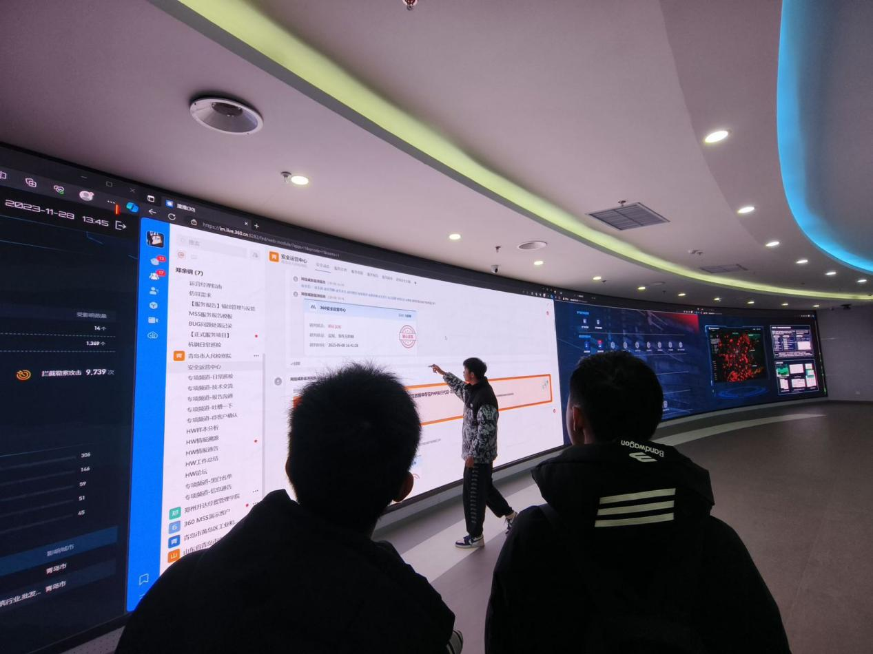 在工作人员带领下,同学们依次参观了安全大脑沙盘、360模拟攻防靶场、安全大脑运营中心等板块,同时,在基地现代化技术手段的展示下,一个个鲜活的案例、一串串悦动的代码,都在提醒同学们养成文明依法使用网络的意识和习惯。现场互动式体验、闯关类游戏等让同学们在寓教于乐的氛围中提升了网络安全意识和技能。