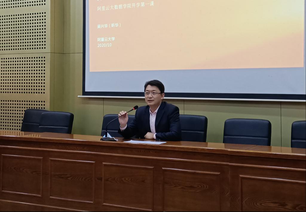 吴兴华从数据智能技术与产业发展、阿里巴巴与阿里云、大数据公司人才培养级产业人才需求解读等四个方面为同学们介绍了大数据行业和技术发展、岗位人才能力需求、所学专业与未来人才需求关系等内容。他建议同学们要树立“聪明、皮实、乐观、自省”八字人才观,珍惜当下时光,注重个人综合素养的提升。