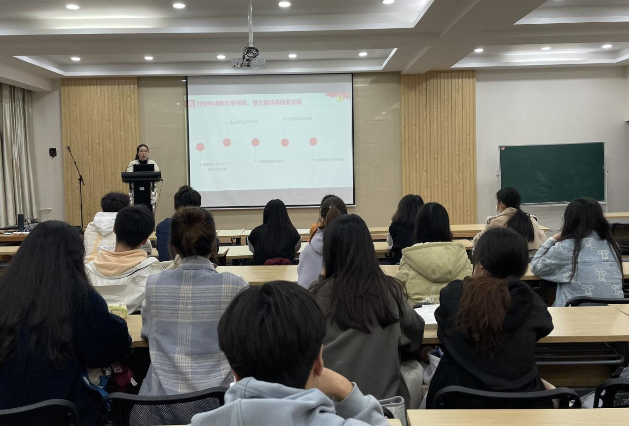 谢菲菲以“学习二十大、永远跟党走、奋进新征程”为题,带领学员们认真学习党的二十大报告和党章,对中国式现代化、全过程人民民主、全人类共同价值等重要概念和教育、科技、人才等相关论断作了重点介绍和解读。谢菲菲结合工作实际,引导学员们从理想信念、科技创新、实践志愿、就业创业等方面真抓实干,用实际行动践行党的二十大精神。