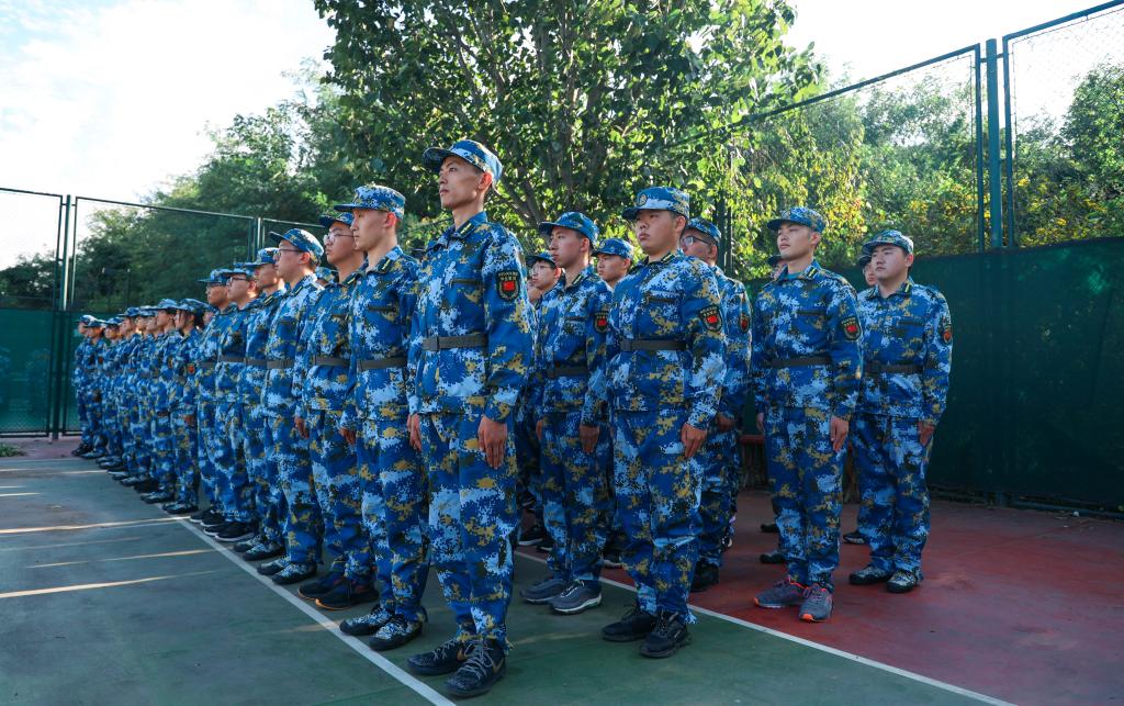 军训是每一个老员工必修的课程,也是同学们磨练意志、提高素质、加强自我管理的一门人生课程。相信同学们能够奋发图强、坚持不懈,取得优异的军训成绩,树立良好的生活习惯与学习态度,铸就美好未来。(通讯员:盖康 摄影:刘俊豪 郭亭斐)