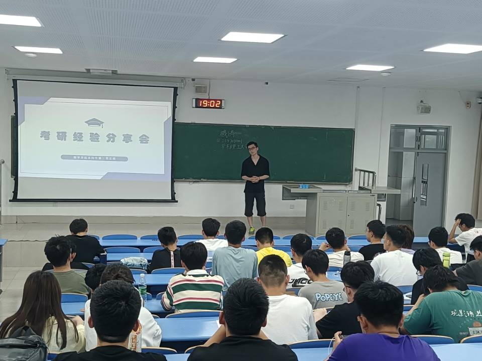 分享会上,夏琦清针对推免的流程作了详细介绍,鼓励同学们参加夏令营与预推免,为自己的保研之路保驾护航,同时,他指出也要注重自己综合素质的提升,尤其是学习成绩和科技竞赛,王圣钦、臧涛和吴传久结合自身经历对各自的考研公司及跨考计算机相关专业的心得作了详细介绍,并分享了各自考研科目的高分秘籍,尤其强调英语学习的重要性。高万全建议报考数学的同学加强课本的复习,注重细节,不放过每一个定理、每一道题,在复习过程中利用好学习笔记与错题笔记,为自己的复习之路打下坚实基础。最后,五位学长与在场同学进行了交流讨论,耐心解答了同学们提出的问题。
