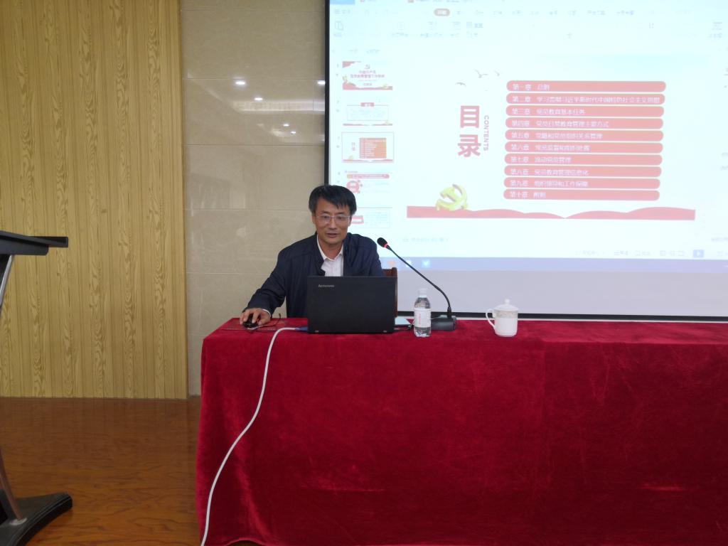 会上,董焕河围绕《条例》的总则、学习贯彻习近平新时代中国特色社会主义思想、党员教育基本任务、党员日常教育管理主要方式、党籍和党员组织关系管理、党员监督和组织处置、流动党员管理、党员教育管理信息化、组织领导和工作保障、附则等十章46条内容,结合《条例》制定的背景、过程、原则及重要意义,逐章逐条作了全面详细的解读。他指出,《条例》为新时代党员教育管理工作指明了方向和道路,全体党员要加强对《条例》的贯彻落实,认真履行好教育党员、管理党员、监督党员的职责,不断提高党员教育管理工作水平。