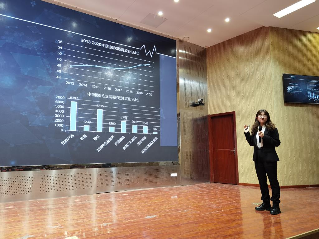 开幕式结束后,来自各公司的24支参赛队伍按照抽签顺序依次上台展示调研成果并答辩。每位参赛选手在台上表现自如,各展风采,市场调查的主题也实用新颖,各具特色。评委老师慎思明辨,不断推敲同学们的调研思路与调研成果,鞭辟入里地分析了每个参赛项目的长处与不足,也给予了许多宝贵的建议。