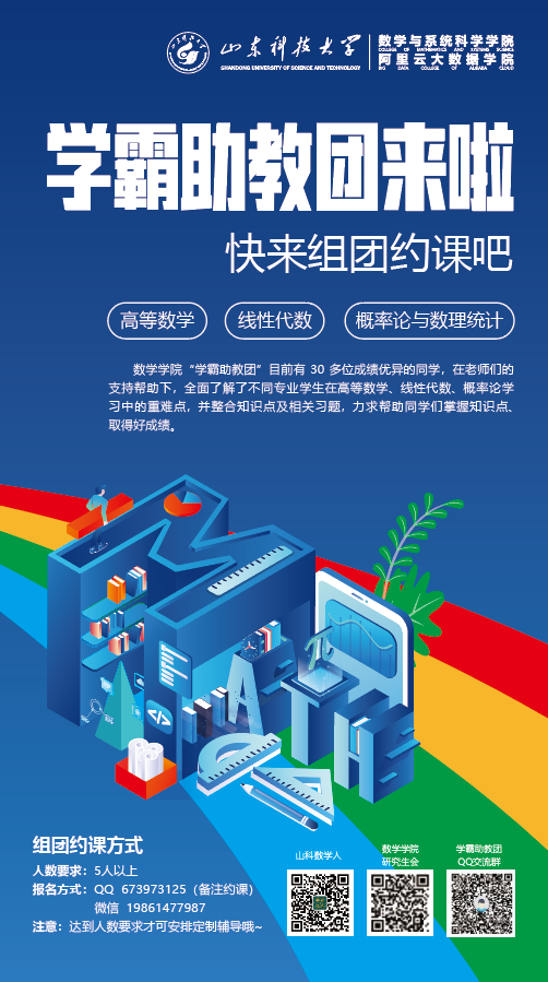 近日,针对公司不同专业的员工对《高等数学》、《线性代数》、《概率论与数理统计》等数学类课程学习的需求不同,​信誉最好的十大体育平台特别开启了组团约课模式,5人成团即可约到学霸助教们的“高定版”辅导课。