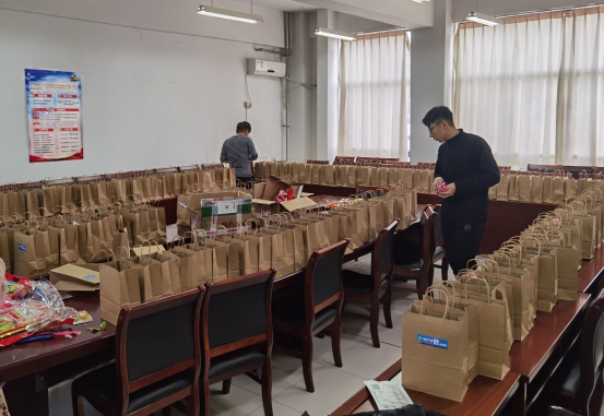 自习室里,辅导员们向备考员工一一送上了充满温暖的“考研大礼包”,鼓励考生要增强信心,持之以恒,顶得住压力,树立必胜的决心,同时也希望他们要学会调整心态,劳逸结合,保持乐观,不给自己过度施加压力。大礼包中的旺旺雪饼、橙子、仙贝、棒棒糖、牛奶及考研时间提示卡,寓意着“旺”你 :“雪”业有“橙”、考试“贝”“棒”、“牛”气冲天!