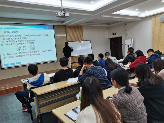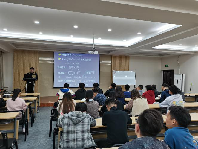 张海溯以“微分方程的概念”为切入点,向同学们介绍了微分方程的种类以及求解方法,并列举了相应的例题来加深理解。随后刘晓向同学们介绍了微分中值定理的三种类型,并对定理进行了详细证明,提高了同学们利用微分中值定理解答相关题目的能力。在讲座最后,两位助教结合自己的学习经历,向大家分享了自己的学习方法和技巧,指出只有夯实基础,不断总结题型和答题技巧,才能在考试中取得高分。